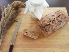 Wcześniej należy przygotować zakwas: 3 łyżki mąki razowej orkiszowej wymieszać w szklanym słoju z ½ szklanki wody (butelkowana, źródlana lub przegotowana lekko ciepła). Słoik przykryć gazą. Następnego dnia znów dodać 3 łyżki mąki, wodę, zamieszać. Tak postępować przez kolejne 4 dni. Otrzymany zakwas wykorzystamy do upieczenia chleba.
